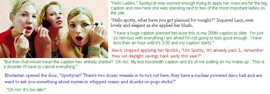 To celebrate the 200th post on this blog I am uploading a special caption I made back in the days when Bimbo's Sanctuary was a thriving community to celebrate 200 captions uploaded there. References to people who were a big part of that community over there, so if you don't get them don't worry.